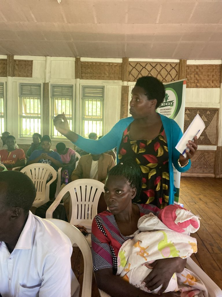 A woman representative in Buhooma sharing insights on the potential for locals to supply briquettes to community tourism lodges.