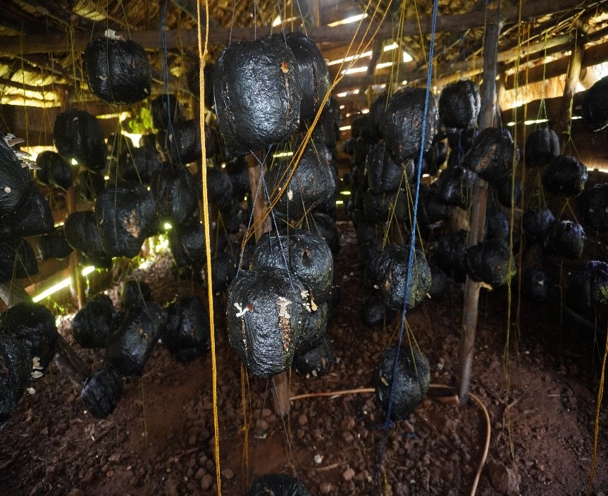 The discussion explored climate-resilient opportunities, such as mushroom farming, that can thrive in dry spells. Prior to the rollout, discussions enabled EGI to identify various resource needs available within the community to support the endeavour. While coffee husks were identified as a rare raw material within the community for mushroom substrates preparation, communities allayed the fear of the available alternative resource, such as maize and millet husks, which can easily be obtained. EGI encourages communities that the mushroom production is economically viable and requires little capital to maintain it. One packet of mushroom spores’ costs about UGX 3000; each pack can make four gardens of mushrooms, which can be harvested within a short period of 2 to 3 weeks.
