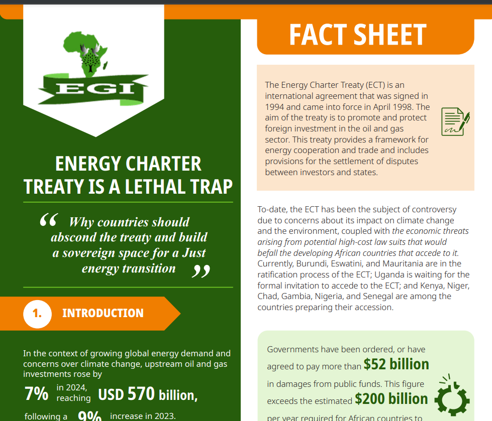 To-date, the ECT has been the subject of controversy due to concerns about its impact on climate change and the environment, coupled with the economic threats arising from potential high-cost law suits that would befall the developing African countries that accede to it.