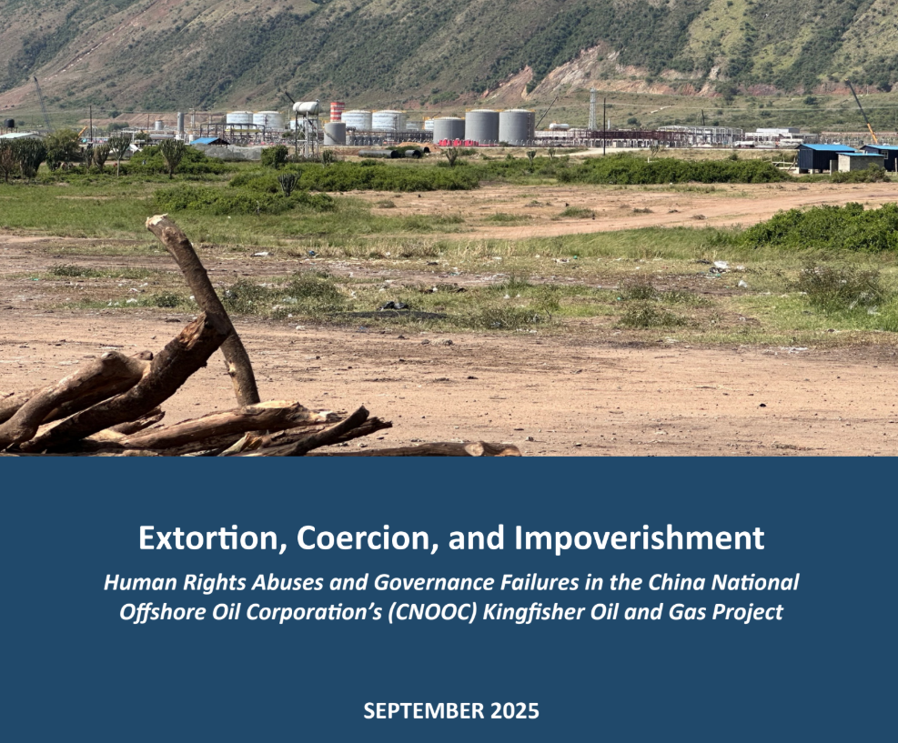 While the Ugandan government has claimed that Kingfisher and related projects will benefit the people of Uganda, those living in and around the planned development tell a different story. Many have been forcibly evicted without compensation, coerced into selling their land at inadequate prices, and deprived of their livelihoods, leaving them struggling to feed their children or pay for education. Many local residents report threats, intimidation, and violence, including sexual violence. Workers complain about safety problems and demands for bribes to obtain jobs from CNOOC and its subcontractors.
